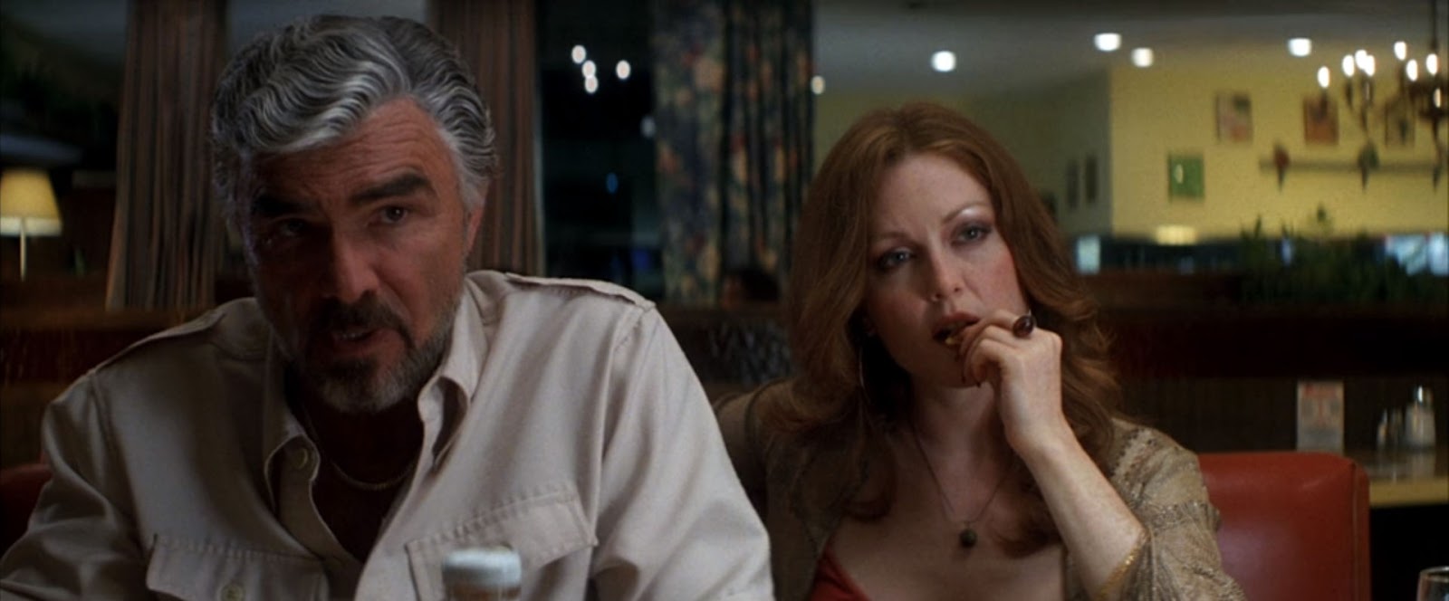 Nina Hartley as "Little" Bill's nymphomaniac wife Burt Reynolds gives one of his best performances since Deliverance. I've never cared for the majority of all his good ol' boy, corn pone shtick movies, that seemed to be his go to persona, between these two films. I'll admit maybe I missed something but that is because Burt being in a film was never a drawing card for me. I have enjoyed a few of his Westerns. Notable in the ensemble cast are, Mark Wahlberg, Julianne Moore, Heather Grahame, Don Cheadle, John C. Reilly, William H. Macy, and Ricky Jay.